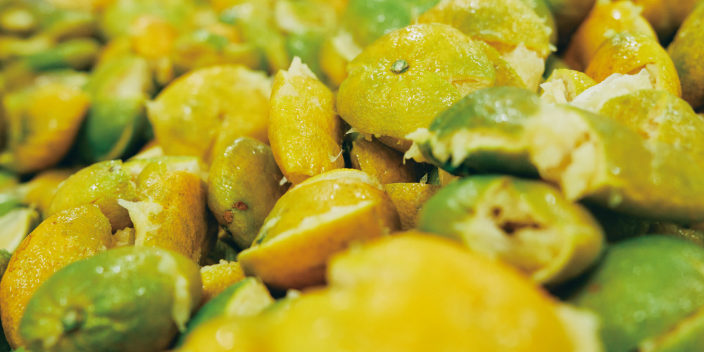 北山村のじゃばら果汁は皮ごと搾るのが特徴。そのため、他の柑橘にはない独特な風味と“にがうま”な味わいが生まれる。料理の隠し味やお酒の割材に使うと、深みのある香りと酸味が際立つ。特におすすめは、生搾り果汁にお酒を注ぎ、削った果皮をひとつまみ浮かべる飲み方。シンプルなのに、驚くほど爽やかでクセになる一杯になる。