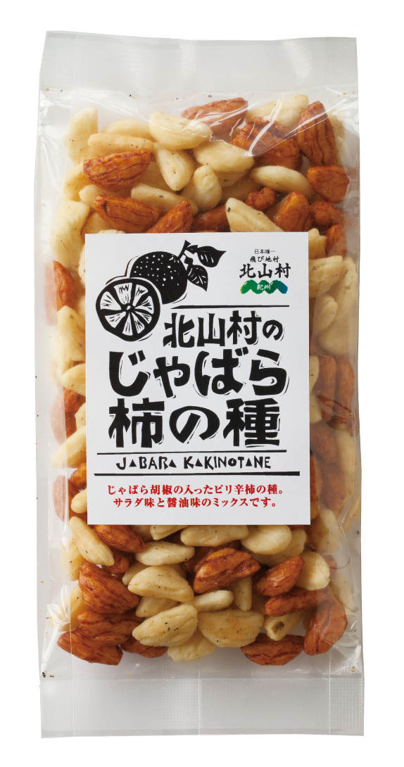 創業60 周年を迎えた、名古屋の老舗あられ専門店あられの匠 白木とのコラボ商品。 原料となるお米、醤油、お塩に至るまでこだわったあられと北山村の『じゃばら胡椒』を使用した、 じゃばらの香りがほんのりアクセントの柿の種が完成。
