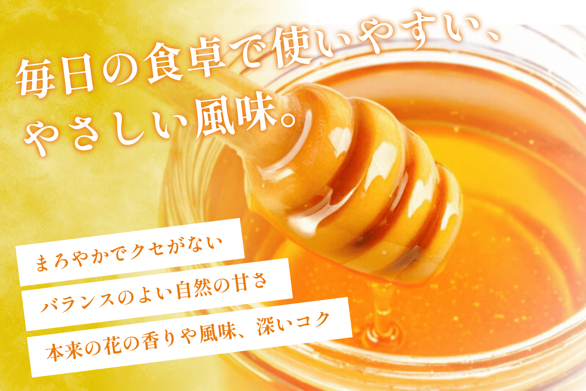 百花蜜とは、山のさまざまな花から採れた、自然そのままのはちみつ。