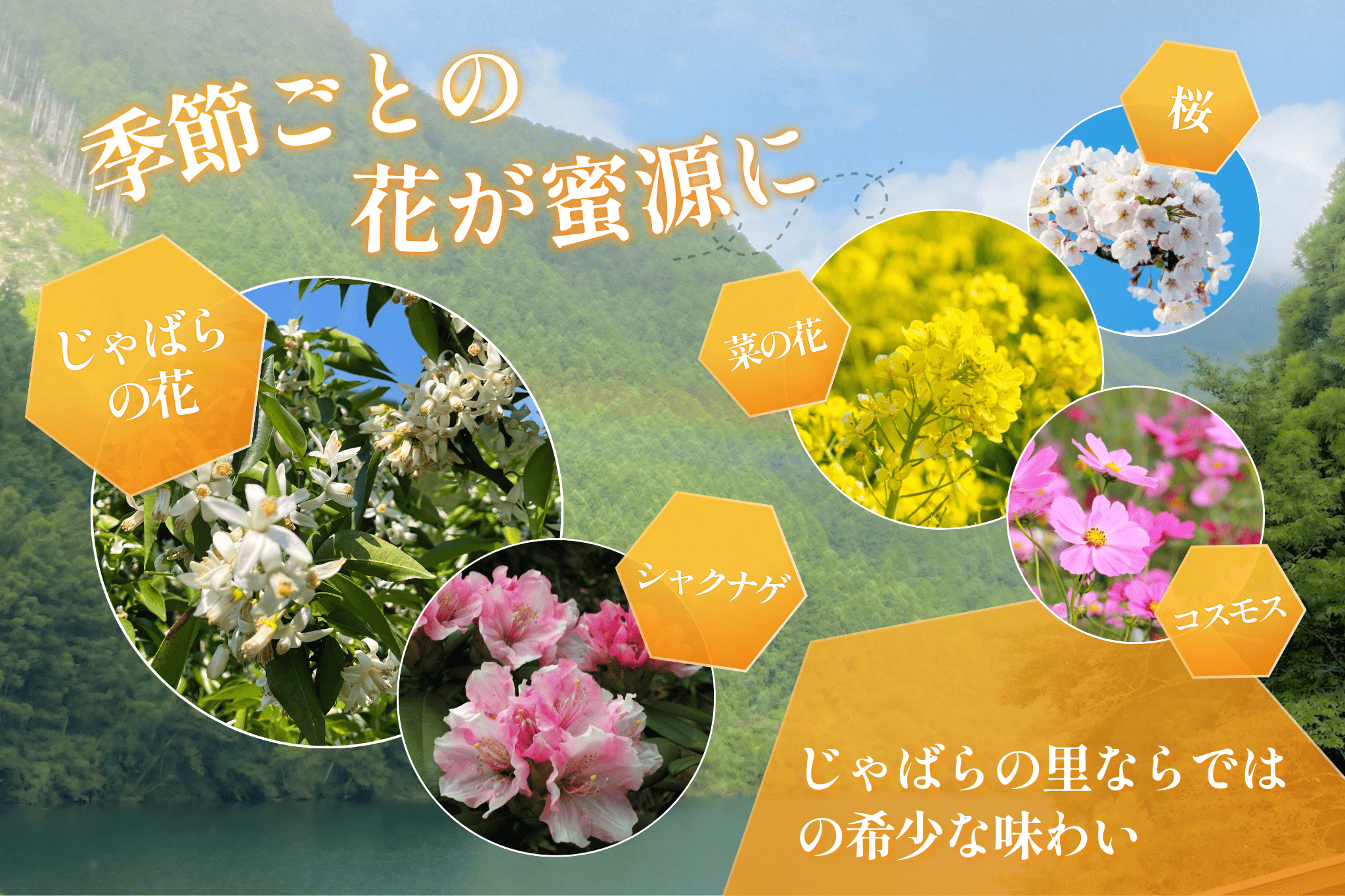 “じゃばら”をはじめとした季節ごとの花々が蜜源となり、豊かな味わいの百花蜜が生まれます。