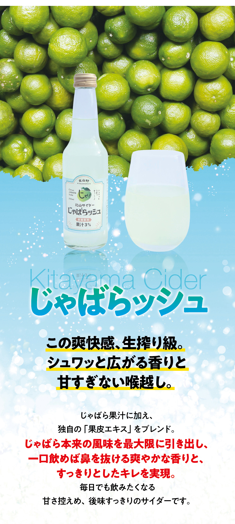 新登場!生絞り級の爽快感サイダー 北山サイダーじゃばらッシュ 250ml×12本