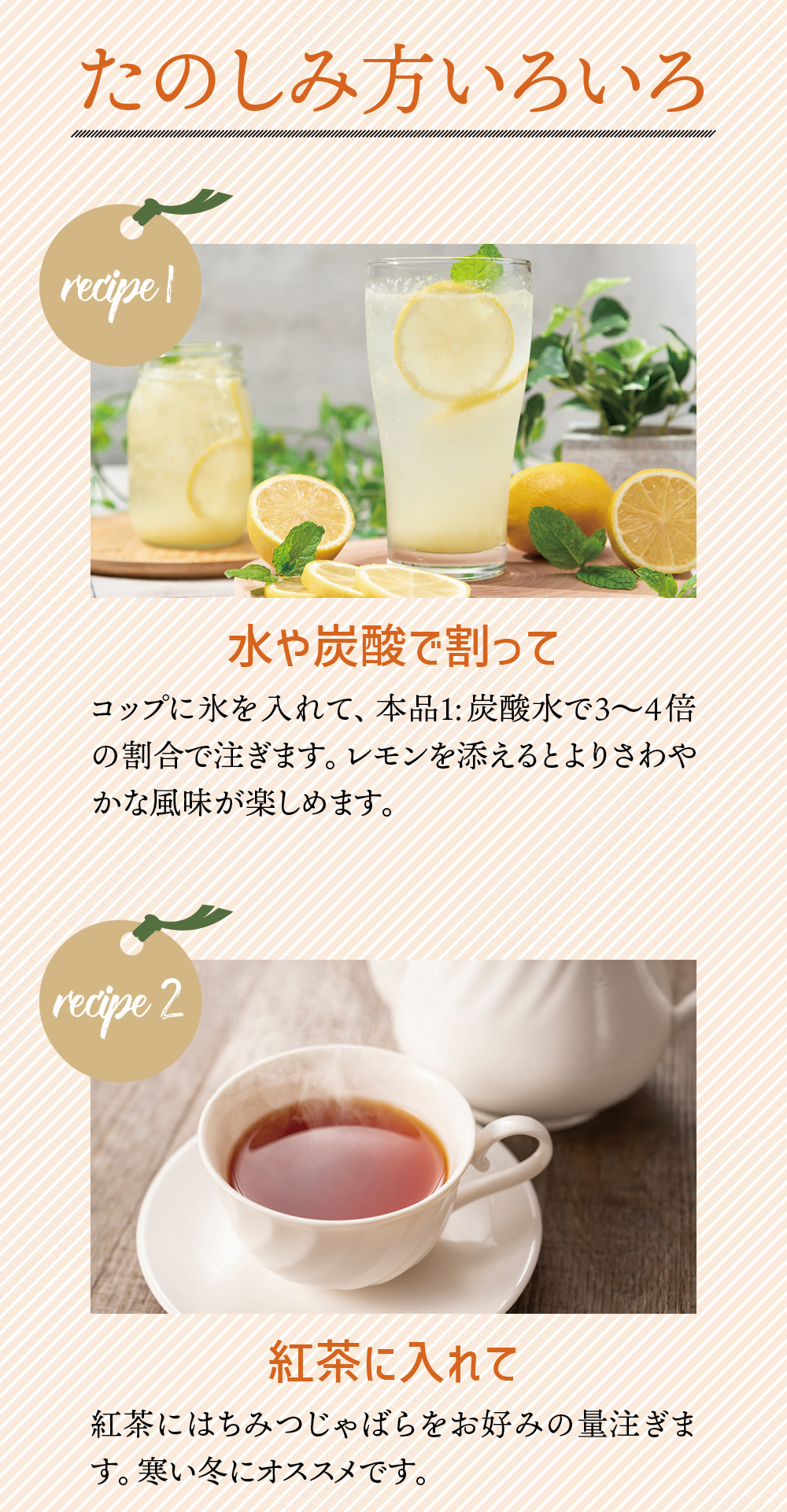 そして贅沢にはちみつを約半分も入れてできた濃厚な希釈タイプのドリンク。