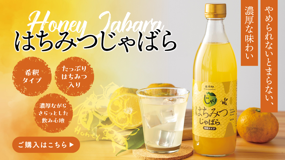 和歌山県の小さな山村「北山村」に、柚子でもない、スダチでもない、とんでもない、へんなみかんが1本だけありました。その名は「じゃばら」。鬼も逃げ出す酸っぱさからか、はたまた松のような不思議な香りがするからか、それは定かではありませんが「邪気を払う」、そんな意味でこう呼ばれていました。たった1本の木から、過疎化の救世主として大事に、大事に育てられ、今ではその数なんと7,000本!じゃばらは、さまざまな加工品となり、山奥の村から皆様のもとへお届けさせていただいています。