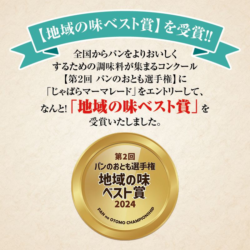 2回目の注文です、はちみつじゃばらドリンクを注文時に、送料不要の一万円にしようと思って、帳尻合わせで、選びました、 もともとマーマレードは、好きなのですが、大正解、甘くて苦くて、はまりました、パンは、もちろんヨーグルト、かき氷などで楽しんでいます、特にヨーグルトに相性抜群で。こんかいリピートしました、