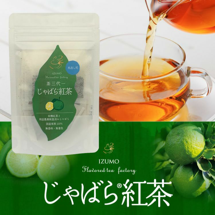 和歌山県北山村産のじゃばらと手間暇かけて育てられた島根県産有機紅茶をブレンドしました。 国産原料100%使用で無香料・無着色。さらに水出しも出来るティーバッグタイプの紅茶でございます。 明治44年の創業から“ゆとりある生活は一杯のお茶から”をモットーに、株式会社茶三代一は皆様方に「心のゆとり」をお届けしてまいりました。