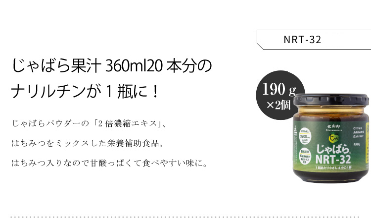 じゃばらパウダーの「2倍濃縮エキス」、はちみつをミックスした栄養補助食品。 じゃばら果汁360ml×20本分のナリルチンが1瓶に。